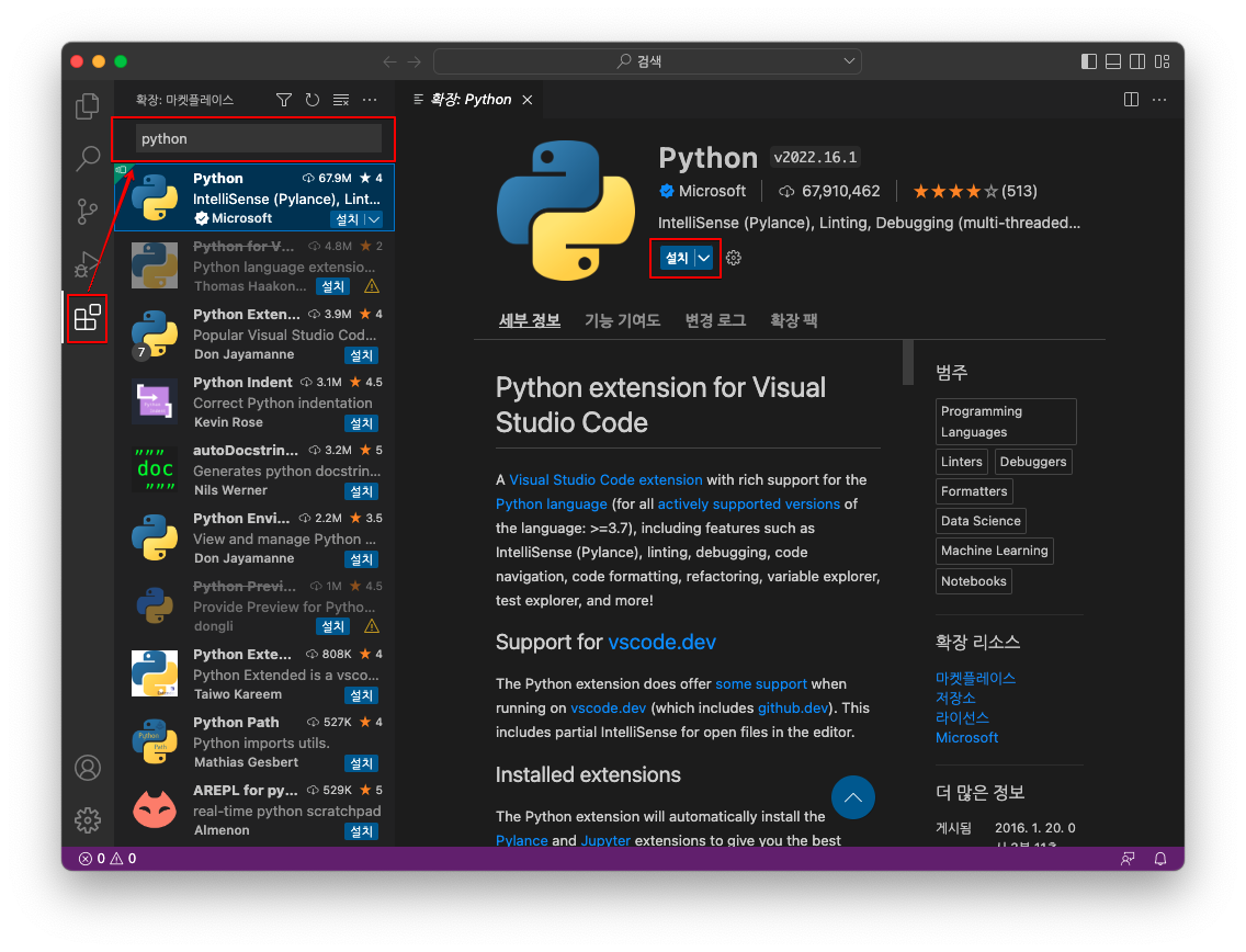 [MAC] VS Code Python 설치 본문
