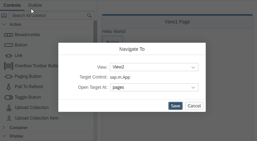 Navigate to 설정은 다음과 같이 View2로 설정해준다.