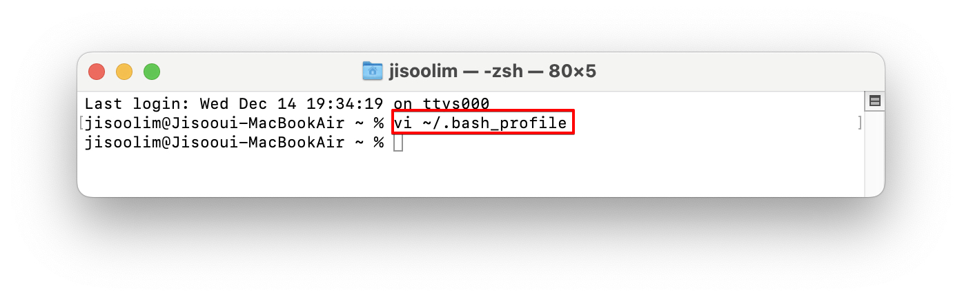 새로운 터미널 창을 열고 bash_profile 파일을 열어 편집한다.