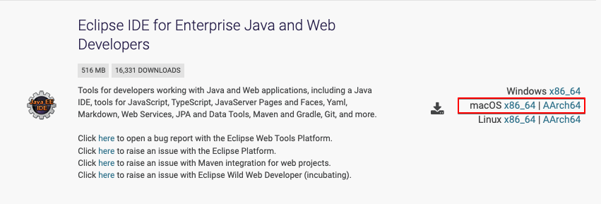 516 MB 16,331 DOWNLOADS Tools for developers working with Java and Web applications, including a Java IDE, tools for JavaScript, TypeScript, JavaServer Pages and Faces, Yaml, Markdown, Web Services, JPA and Data Tools, Maven and Gradle, Git, and more. Clic