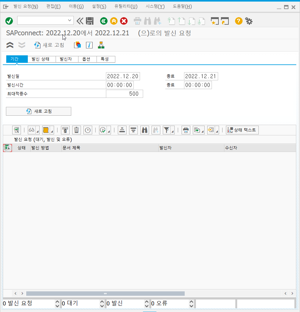 SAP GUI에서 메일을 발송하고 메일이 잘 발송되었는지 확인 가능한 transaction 이다.