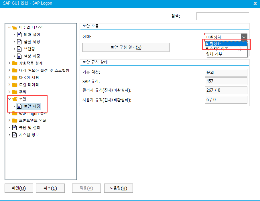 SAP GUI 로그인 보안 팝업 비활성화 본문