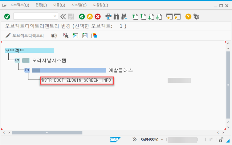 확인된 내용을 보고 개발클래스를 변경해준다. 본인은 타인 Local에 할당된 오브젝트를 본인의 Z개발클래스에 재할당했다. (Local object의 경우 CTS로 전송이 불가하기 때문) 저장후 다른 요청과 동일하게 T-Code STMS를 통해 전송해주면 반영된다.