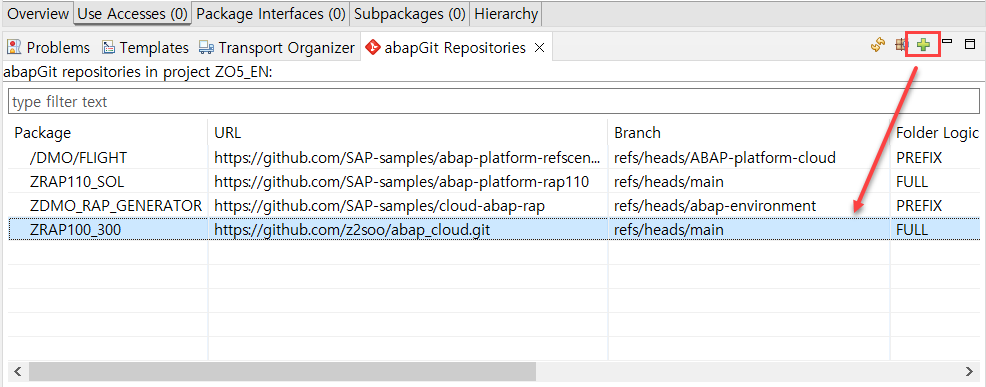 상단 플러스를 선택해 복사한 ABAP Repository 주소를 넣어주면된다.