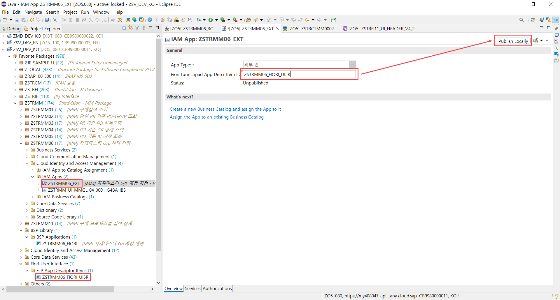 입력 후, 우측 상단의 Publish Locally를 클릭한다. (시간이 조금 걸릴 수 있다.)