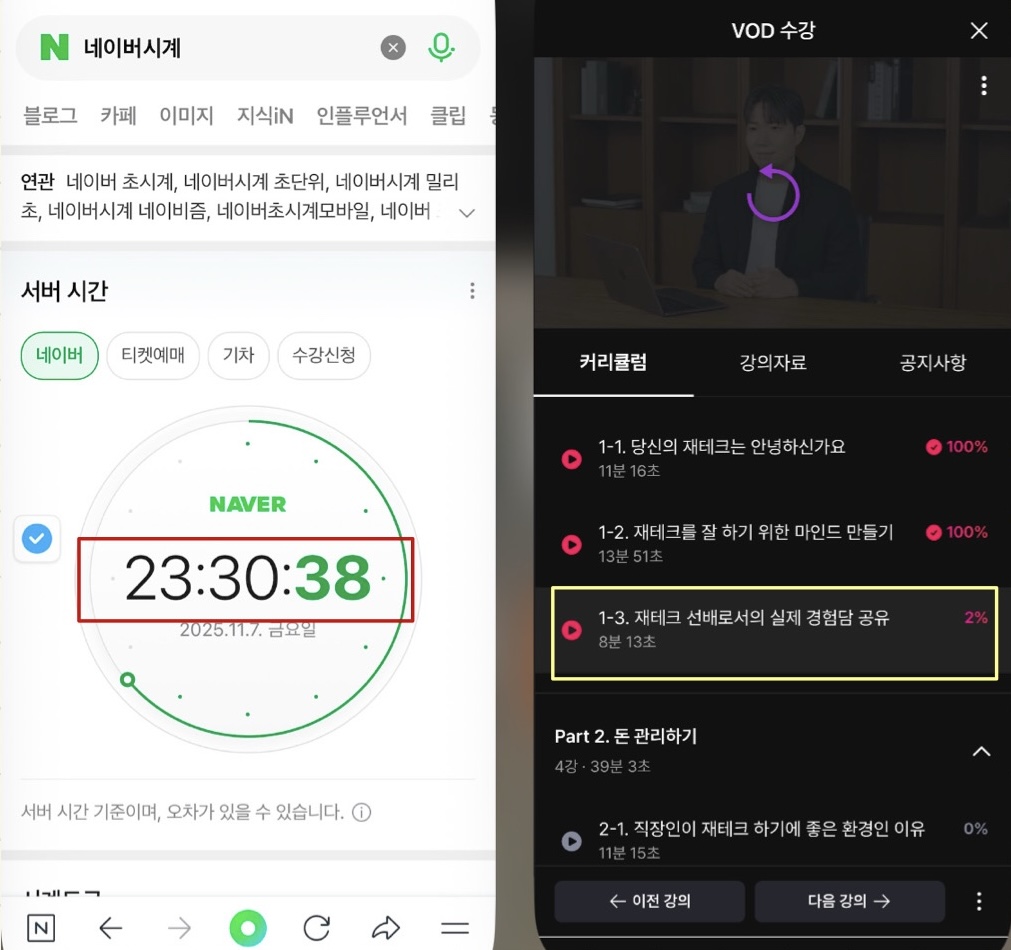 수강 후 수강인증 사진을 캡쳐해두었는데, 잘못되어 있어서 결국 한참 지난 시간으로ㅠㅠ 다시 캡쳐를 했다.