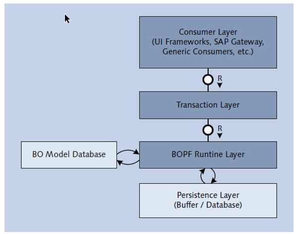 클라이언트는 BOPF의 객체지향 API를 활용해 business object에 접근 가능함 - Transaction layer