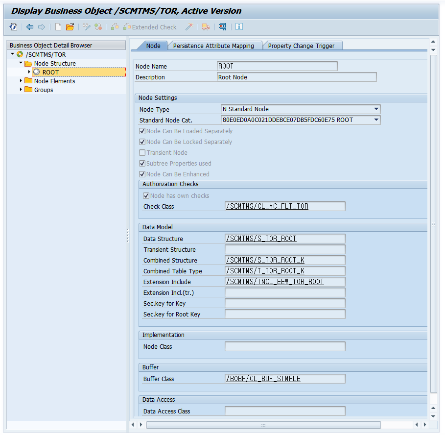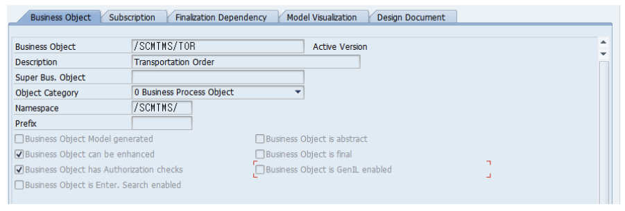 우측을 보면 해당 business object, /SCMTMS/TOR 에 대한 정보를 확인할 수 있다.