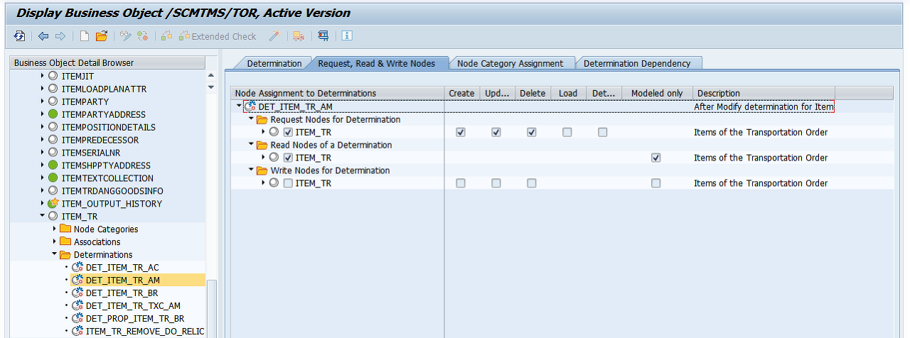 TOR business object의 determination을 클릭하여 determination의 설정에 대해 보도록 하자.