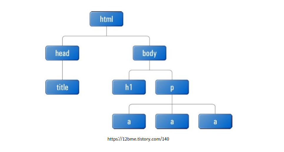 브라우저는 HTML 태그를 parsing하여 DOM tree를 구성한다. DOM은 데이터의 표현식으로 모든 HTML 태그에는 그에 상응하는 노드가 있으며, 태그 사이에는 텍스트 데이터가 포함될 수 있다. 각 태그는 태그 데이터의 표현식인 DOM 요소로 1:1로 대응해 표현되며, DOM 요소 노드는 트리 형태로 구성되기 때문에 DOM tree라고 부른다.